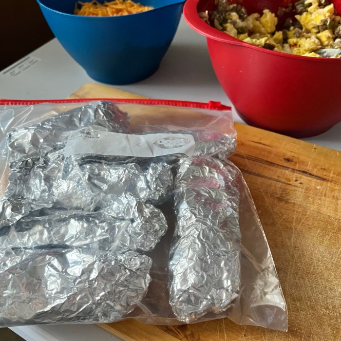 I watched a few videos. Interesting to see all the different versions. Some people fully cook the burrito first and then freeze it. Some partially cook. One thing the same is they wrap it some way and put them in a freezer bag. Today I was my second time making mine. I stuck with traditional, sausage, pepper, onions, eggs, and cheese. The first time I made 10. Even though I only doubled the recipe today, I made 30, but I had a lot of filling left over which I just called my dinner.