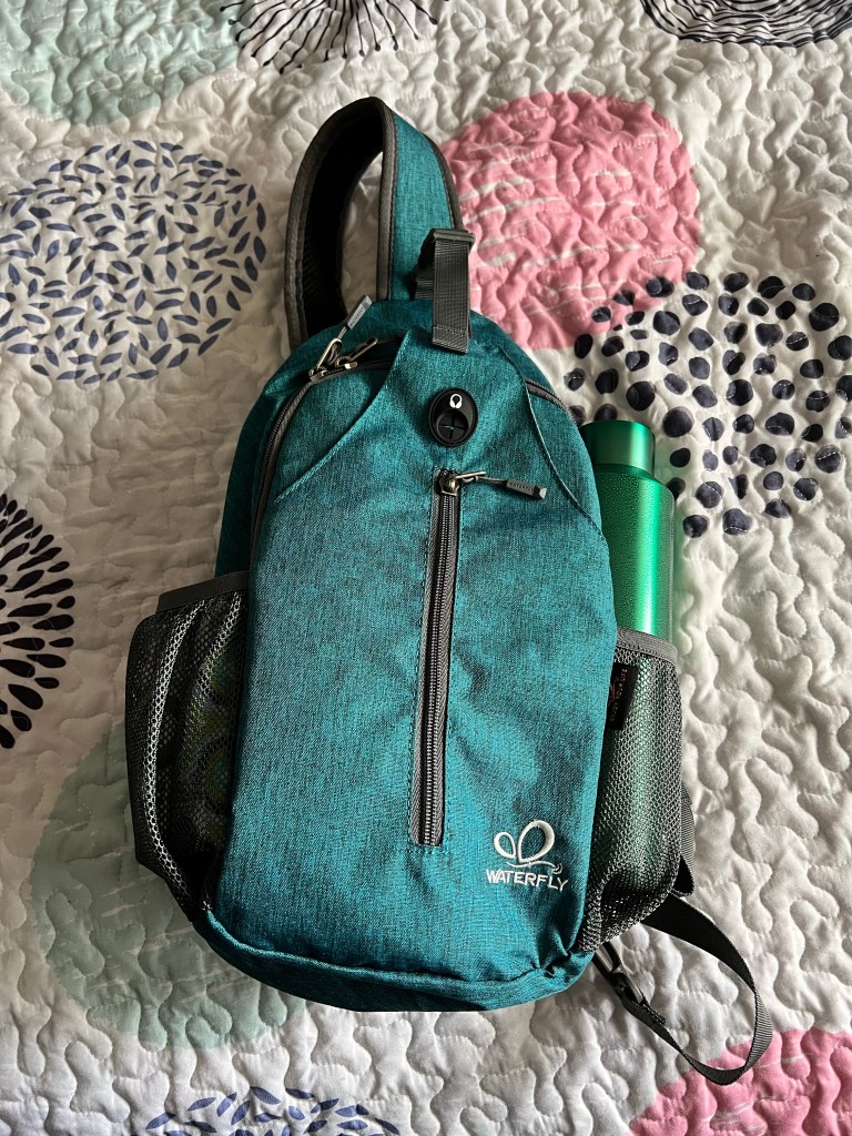 It seems getting my steps in at work is fairly easy. My workplace building used to be an industrial building then turned into an office building. There is a lap you can do inside the building that is shy of a quarter mile. So when I use the bathroom I do a couple laps afterwards, unless work is really intense. But if I can spare the time, it is really nice to get away from the desk and just breathe a bit. If I can’t get all my steps in during the day I have two options. I can either go on the treadmill in the gym in the basement at work, or I can go on the nearby bike trail after work. I bought the bag to take with me so I can store my phone and keys and water and not have to take my purse and work backpack with me.