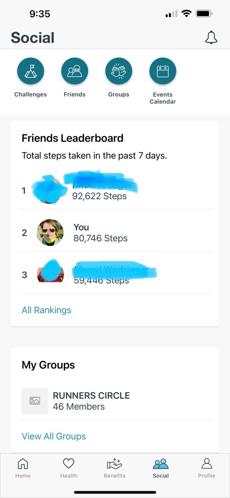 What I most hope to achieve is improving my energy. I have really only been steady at this for a week. Yes, one day I didn’t get there, but close enough. I think it is too soon to talk about the difference it is making for me. I have a community of other people doing the same thing which is nice. The one screenshot is from the Virgin Pulse app which my work uses. I am in the middle. The one person on the top has a job that keeps him moving around more, but he also makes the effort to get more steps in. I also have family and friends outside of work doing the same thing. When you have that, it is even more motivating. I still hope to get back into running, but I will need to take baby steps. I remember how meditative it was!